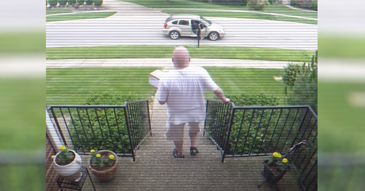 It stopped right in front of his home. A man wearing a white shirt got out of the car, walked towards his porch, and grabbed the package.