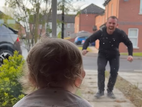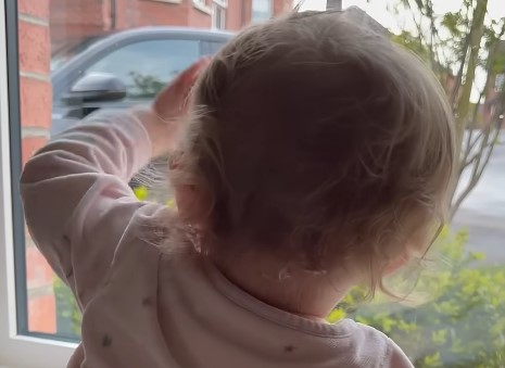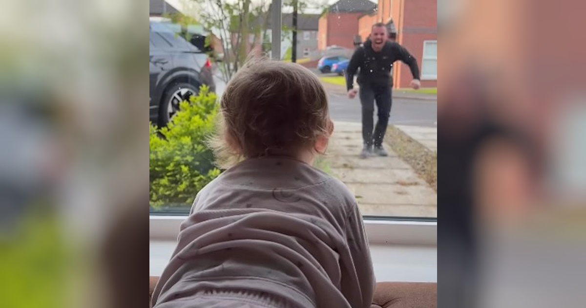 In the adorable video of this Northern Ireland family, the toddler’s excitement reaches new heights as she watches her dad’s car pull up through the living room window.