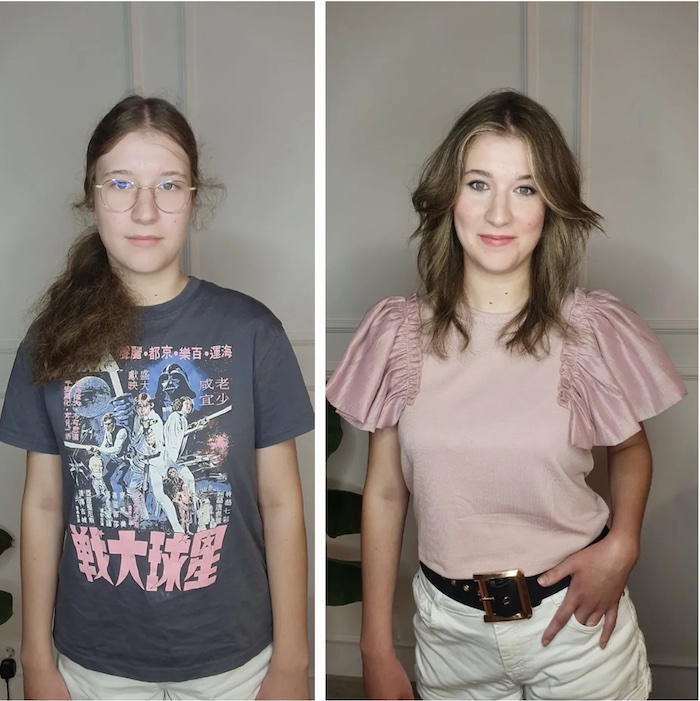 It’s amazing how transformative the right style can be—who would have guessed they were the same person? Wow!
