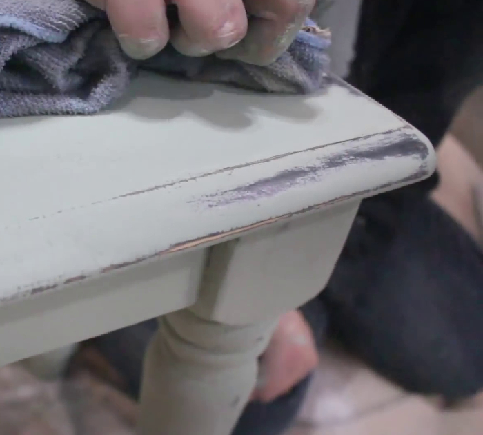 5. Wet a lint-free cloth and wipe it on the sanded surfaces to soften the distress.
