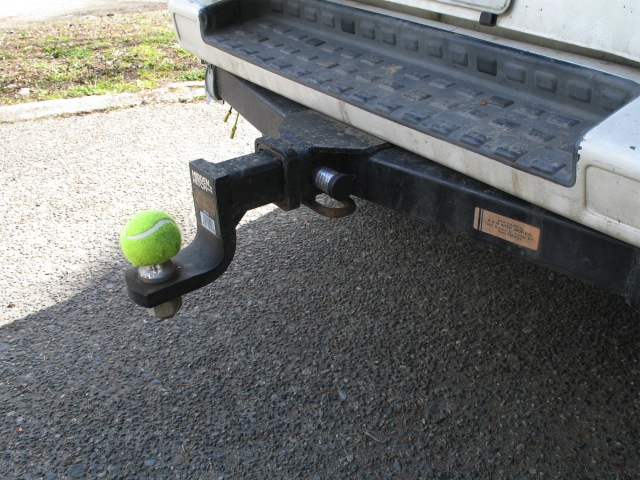 Slit a tennis ball and stretch it over the hitch of your trailer to protect it and prevent it from scratching other cars.