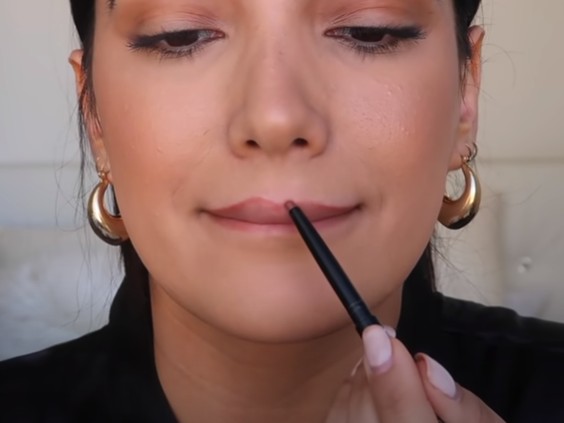 Her advice is that you use a lip liner that is one shade darker than your natural lips- it could be a nude or pinkish shade, like she uses.