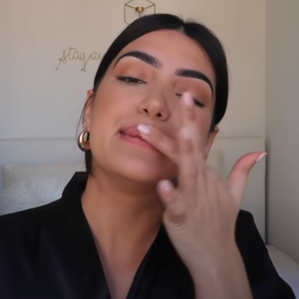 So, Lazarof puts on the lip scrub and, again, makes circular motions for better results. Once she’s done with this step, she’s ready to move on to the next and most crucial one.