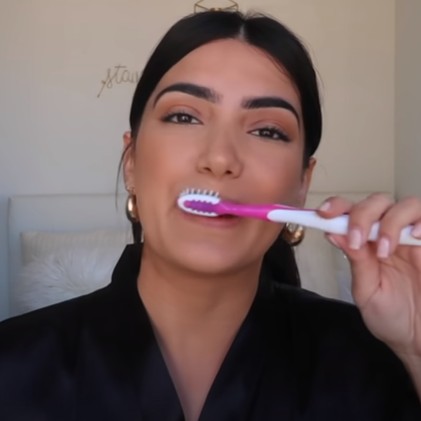 Lip scrub can be done by either using a toothbrush or a lip scrub. The YouTuber here uses both these methods. She first takes her toothbrush and makes circular motions on her lips. When this is done, her lips indeed look a bit bigger.