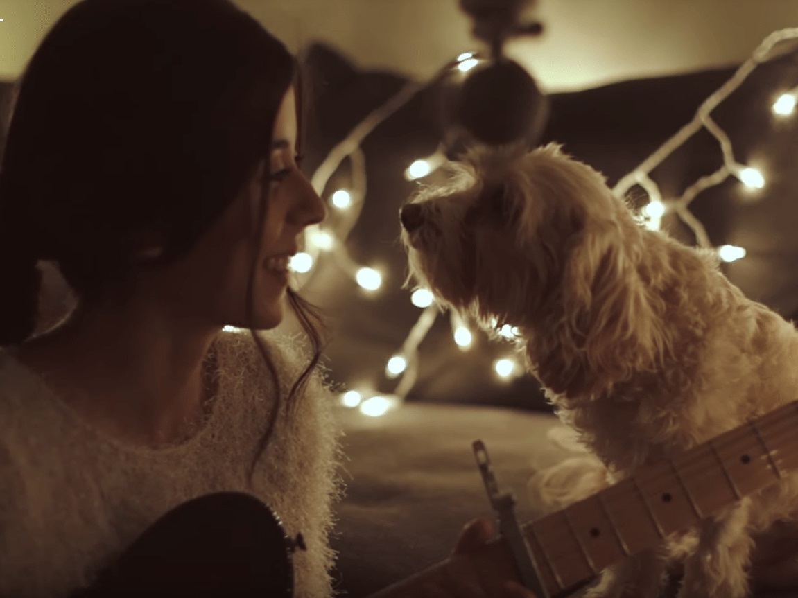 Daniela’s soft and angelic voice is perfect for such a beautiful song. Her dog, Dina, thinks so too and has the most adorable reaction when she begins to sing.